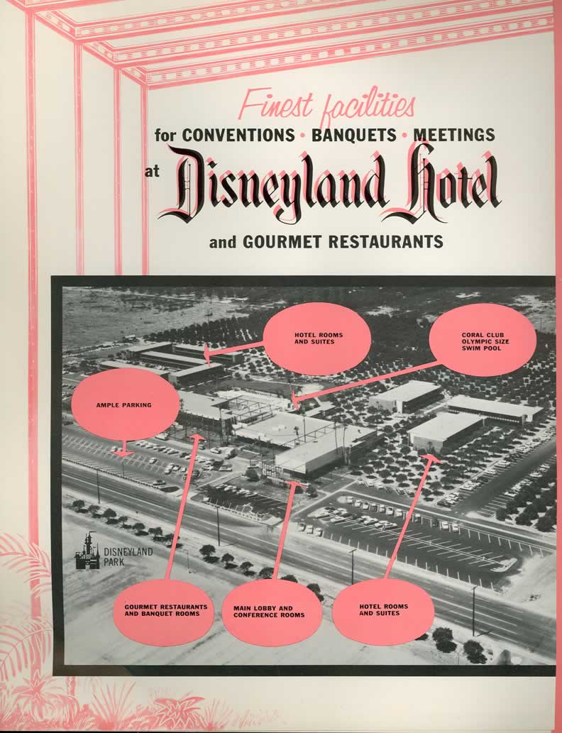 1956 convention brochure - part 1. This was the very first brochure put out to attract business people. This was before the Magnolia and Embassy Rooms and the Hotel had limited convention facilities. Conference rooms could only accommodate up to 50 people maximum however, the rooms could be opened up creating one large room which could hold up to 140 people. This is a very rare brochure. |
