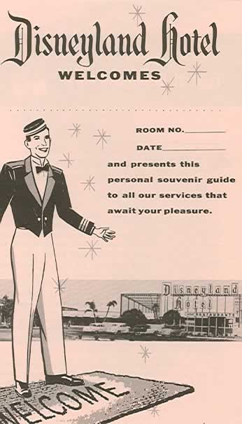 1956 brochure listing inside the many amenities at the Disneyland Hotel. The Coral Club is now listed in this brochure featuring Olympic swimming pool, children's wading pool, sand box & playground, shuffleboard and a championship putting green.