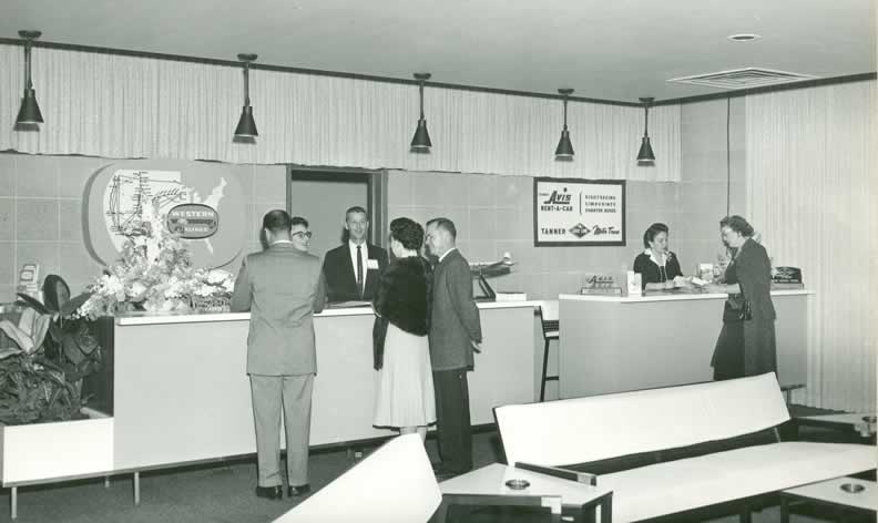 Check-in Desk The early lobby also featured travel agencies, car rental and limousine services and other local area attraction assistance. Photo courtesy Molly Dolle