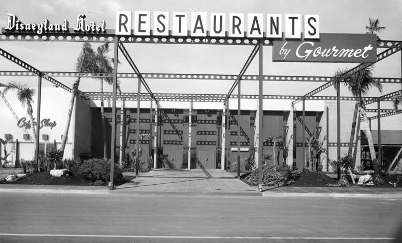 Photo taken outside the Gourmet Restaurant, Coffee Shop and ‘Round the World Lounge. This was taken about two weeks before the facilities were completed dating this photo to July of 1956. Construction is visible on the middle right of the photograph. |