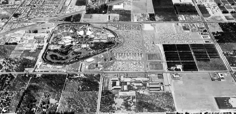 This is an extremely rare shot in that the fourth North Garden structure is in place. This configuration would last less than one year as two new Garden Structures were built in 1960 and opened in 1961. Notice also the area of fresh pavement on the upper right of the Hotel grounds. The Little Gourmet (a converted ranch-house building) had just been torn down. This served as the Hotel’s restaurant until the Gourmet Restaurant opened in 1956. The Little Gourmet then served as a storage facility until it was torn down in June of 1959. It looks as if ground had been cleared for the first Tower Building however construction would not begin until 1961. Still a lot of orange orchards in Anaheim but that would soon change. |